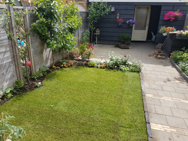 “ Leverancier was niet erg welwillend en de chauffeur had geen zin om meer moeite te doen on de levering achter te plaatsen dus moest alles door het huis heen getransporteerd worden door mijn vrouw. Sommige graszoden waren erg slecht door achtergebleven gemaaid gras maar hebben zichzelf goed hersteld. ”