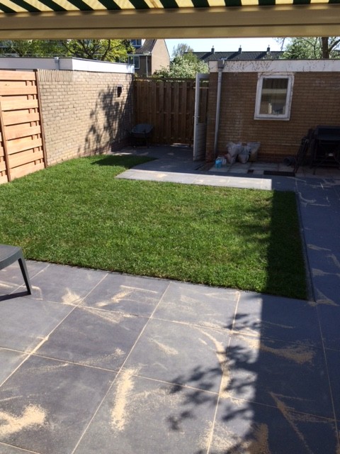 Beste Dennis,Bedankt voor uw beoordeling, goed om te horen dat de aanleg goed is verlopen. Helaas zitten er in de ondergrond altijd wat kleine steentjes en deze kunnen ook in het gras voorkomen. Alleen de steentjes die op het gras vallen hebt u last van, deze kan u het beste er vanaf pakken.