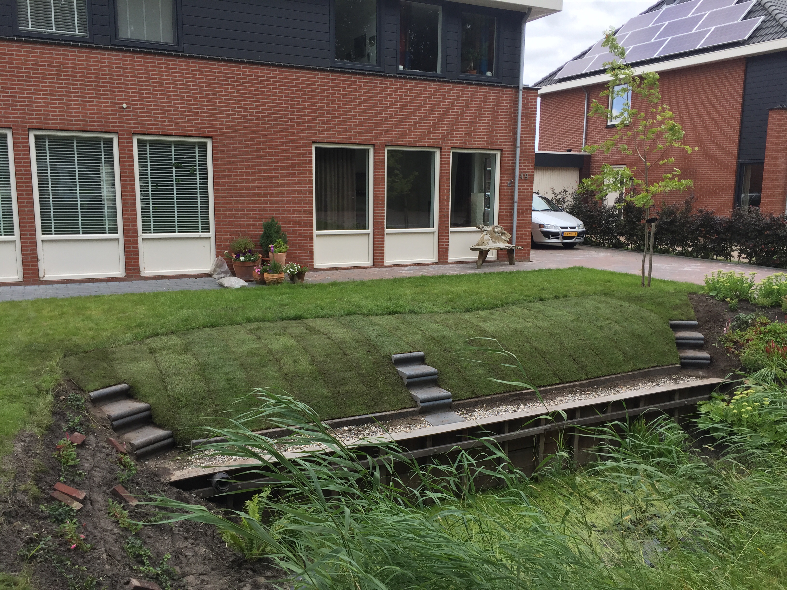 Doordat de zoden erg nat waren zijn ze ook behoorlijk zwaar, hierdoor kunnen ze soms wat eerder scheuren. Dit is niet de bedoeling maar kan soms wel voorkomen. Gelukkig groeien de graszoden snel aan elkaar en kan u genieten van een mooi strak gazon.